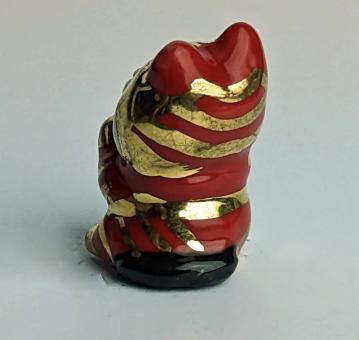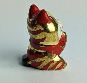 Weiß, Rot, Gold und Schwarz. Diese liebevoll gestaltete Keramikfigur einer liegenden weiß-roten Katze mit goldenen Ohren ist ein echtes Highlight für jeden Katzenliebhaber. Die Figur zeigt die Katze dabei, wie sie in einer entspannten und lässigen Haltung liegt.