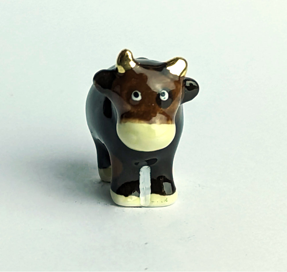 Sie suchen nach etwas wirklich Einzigartigem für Ihre Sammlung? Dann ist unsere handbemalte, goldene Keramikkuh mit ihrem unschuldigen Gesichtsausdruck genau das Richtige für Sie! Mit einer Größe von nur 2 cm und in den Farben braun und dunkelbraun, ist sie der ultimative Hingucker in jedem Raum.